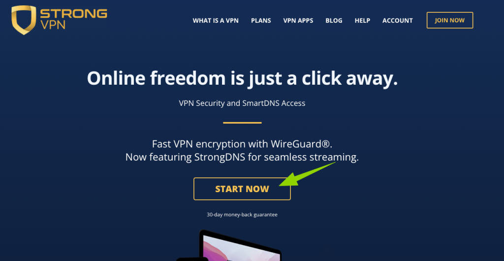 ⑴第一步:打开StrongVPN官网,并点击“Start Now”按钮。