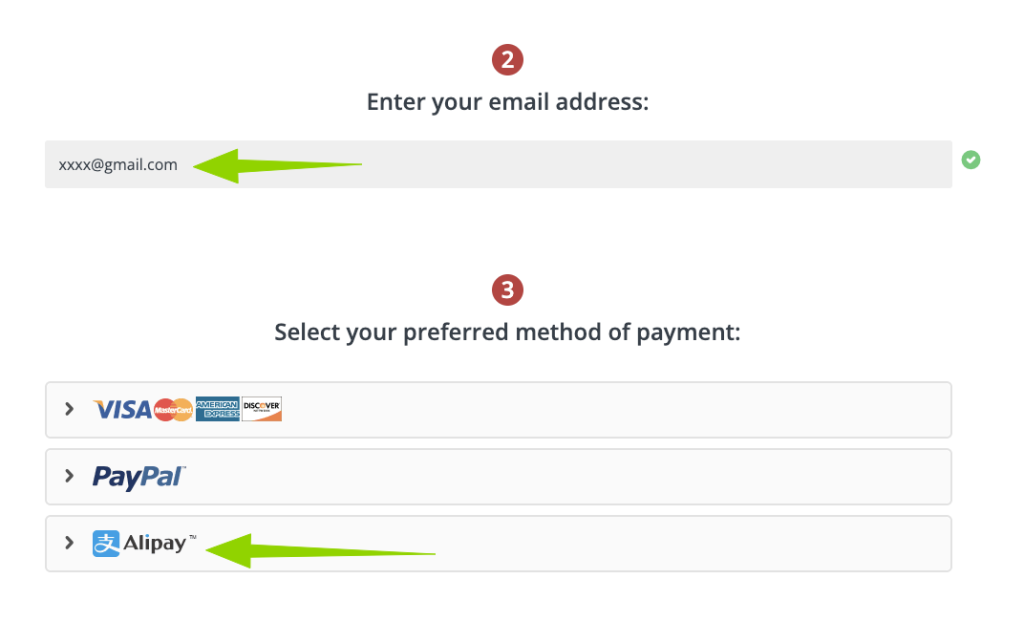 ⑶第三步:输入你的电子邮箱地址,并使用支付宝完成付款。