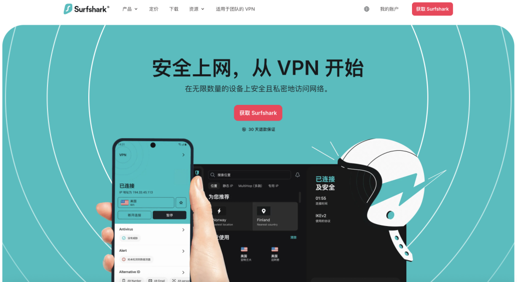 4、中国VPN推荐:Surfshark – 不限制设备数,性价比高
