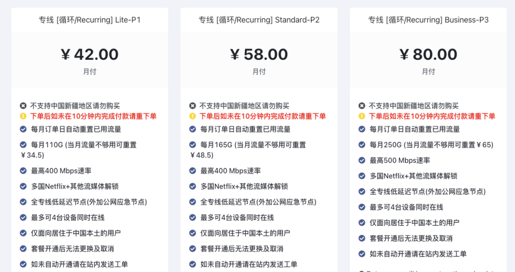 此外,我们建议大陆用户至少准备两款中国VPN软件,这样当一款出现问题时,能够及时切换到另一款。请记住,好用的VPN通常价格不低,而便宜的VPN往往体验不佳。在网络安全和隐私保护方面,投资一个可靠的VPN服务绝对是值得的。